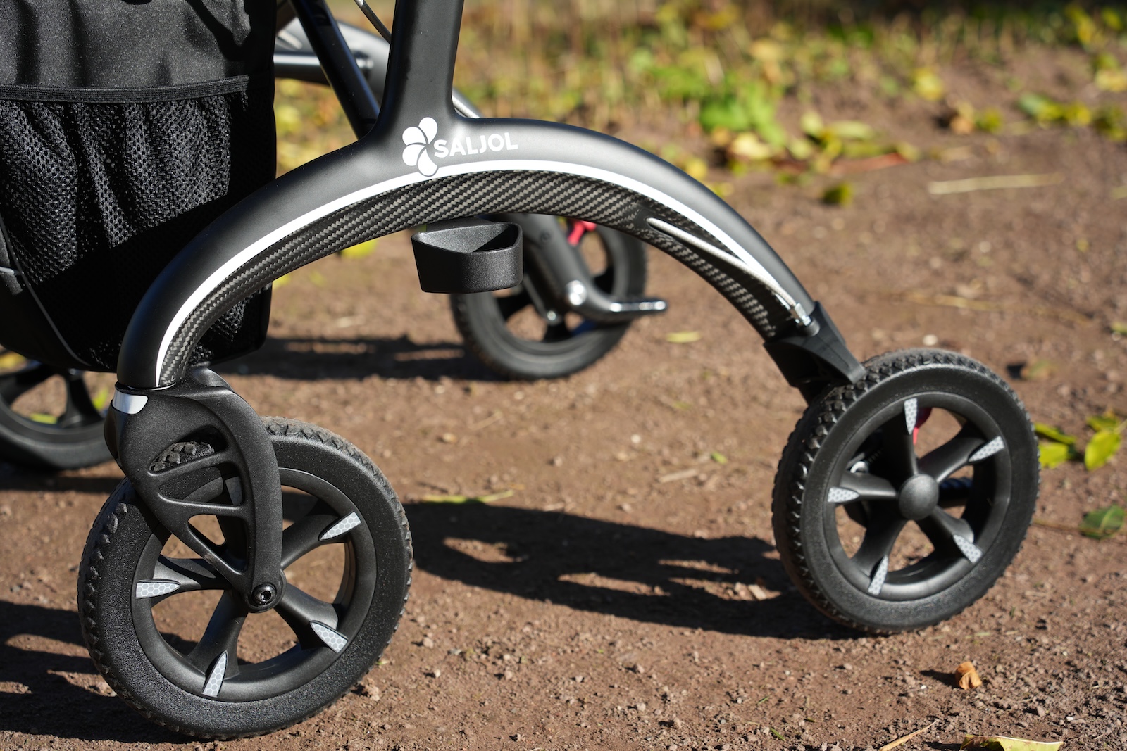 Draußen bietet der Carbon-Rollator von Saljol unschlagbare Vorteile: Er ist sehr leicht, stabil und einfach faltbar. „Ich kann den Rollator mit einem Finger hochheben. So kann er ganz einfach im Auto transportiert werden“, berichtet sie. Mit eleganten Designs, wie dem beliebten British Racing Green oder einem matten Schwarz, und durchdachten Details wie wärmenden Korkgriffen und dämpfenden Rädern erfüllt er höchste Ansprüche an Komfort und Funktion. Die integrierte Schleifbremse sorgt für maximale Kontrolle, wenn es bergab geht. „Die Bremse kann einfach mit dem Fuß gedrückt werden und dann rollt der Rollator einem nicht davon“, erklärt Heidenreich. Die bequeme Sitzfläche lädt zu Pausen unterwegs ein, die Tasche bietet viel Platz, und der Rollator klappert nicht. „Außerdem sind überall an dem Rollator Reflektoren, sodass man immer gut im Straßenverkehr gesehen wird“, so die Expertin.